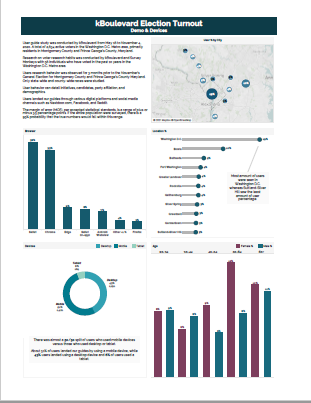 Voter research report provides detail about how would-be voters research candidates at the local level. This report provides insights into user demographics, user preferences of candidates, and the issues. Run a competitive campaign with high-quality, up-to-date insights from the start. Craft the perfect messaging on the topics your base cares about.